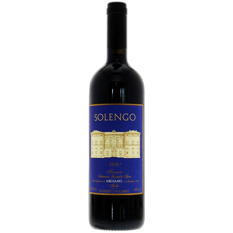 An outstanding Solengo, the Toscana Solengo 1998 has violet and berry aromas, with hints of toasted oak. Its color is intense, deep ruby to purple. Medium to full-bodied, with velvety tannins and a long, fruity finish. An intriguing blend of Cabernet Sauvignon, Petit Verdot, Merlot & Sangiovese aged in 100% new French oak for 16 months prior to bottling. Pairs well with beef, veal, lamb and cured meat. 91 point rating.